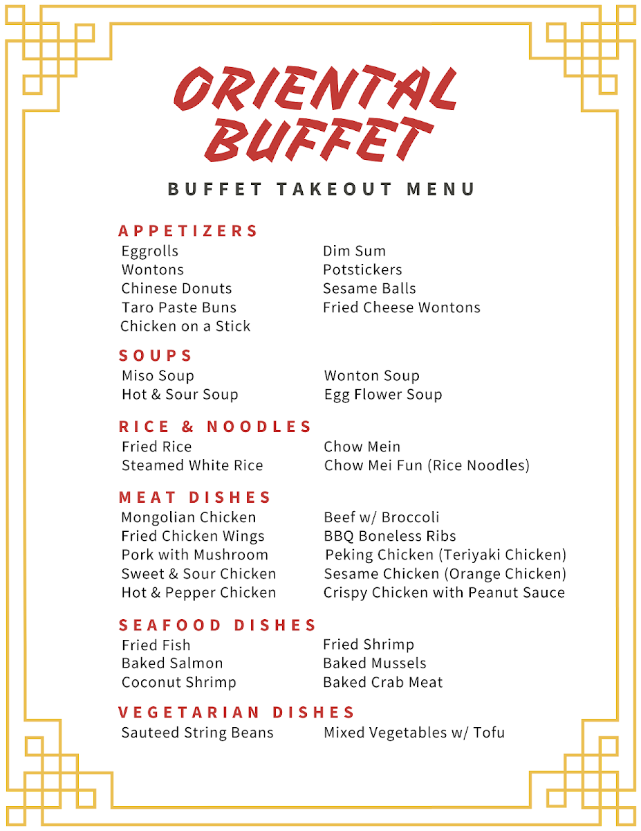 Oriental Buffet Menu